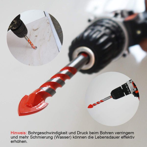 Robuster und langlebiger Glasbohrer: Die Bohrer Spitze ist aus Wolframcarbid, der alle Bohrer sehr gute Abriebfestigkeit und extreme Härte macht, wodurch die Gefahr von Brüchen während des Gebrauchs reduziert wird.