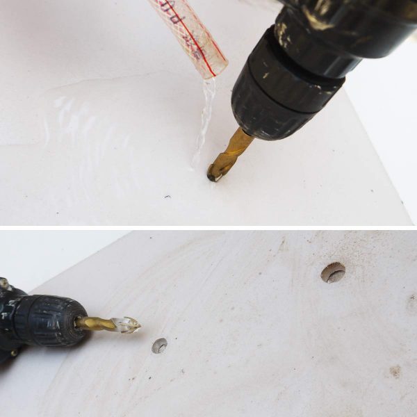 Hinweis: Wenn Sie anfangen, das Glas zu bohren oder zu durchbohren, sollten Sie die Kraft kontrollieren und die Geschwindigkeit verringern.